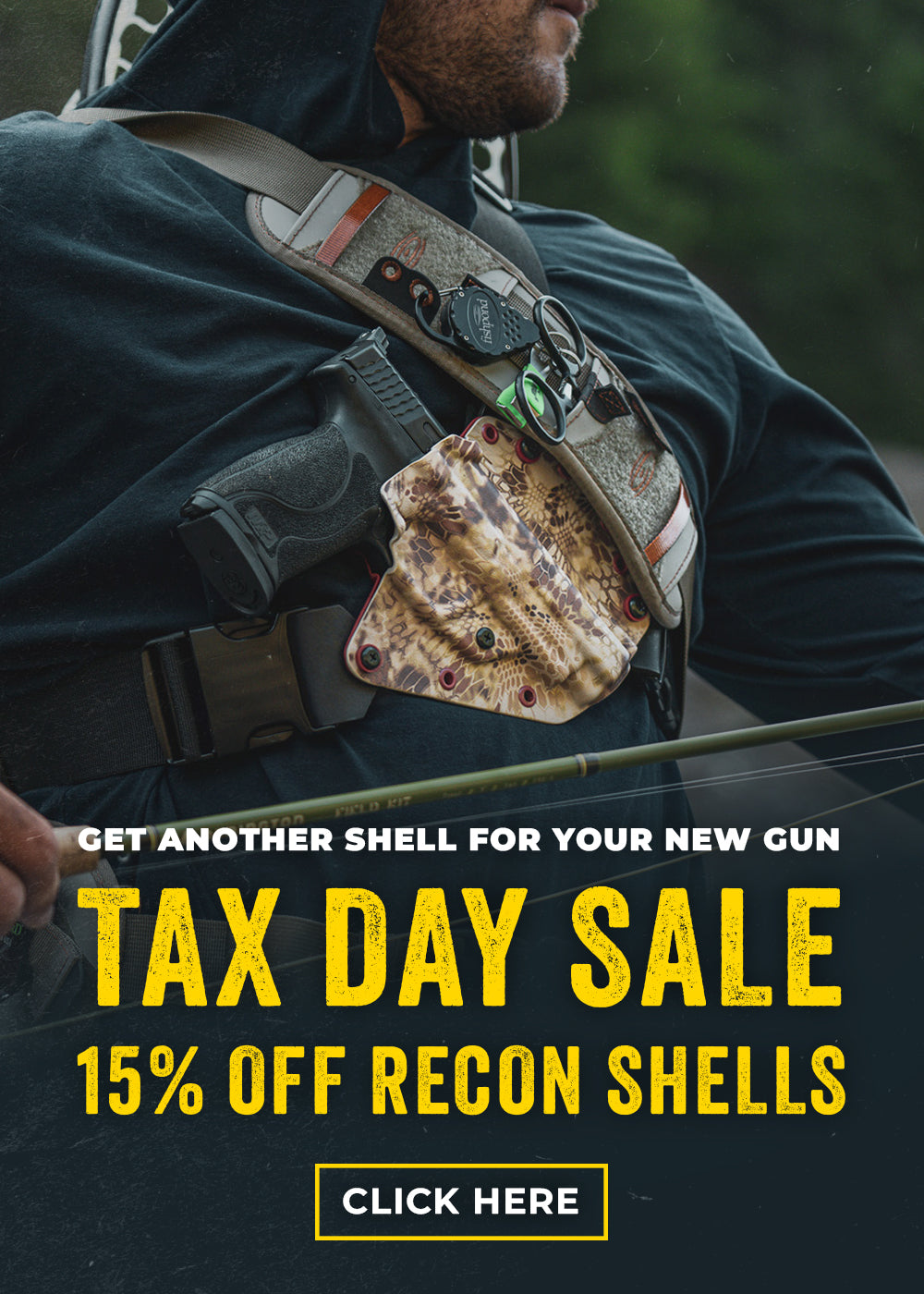 Man wearing a Recon chest holster from Invader Concepts in the backcountry